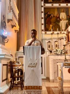 O ato aconteceu durante a celebração eucarística, na qual o sacerdote foi oficialmente apresentado à comunidade pelo Padre Higor, Vigário Episcopal do Vicariato Norte, que destacou a missão confiada ao novo reitor e administrador paroquial no cuidado pastoral, litúrgico e evangelizador da comunidade.