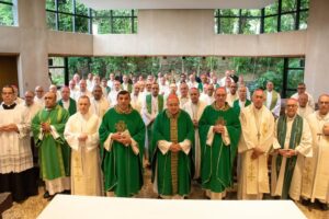 Entre os participantes está Dom Pedro Cunha Cruz, bispo diocesano de Nova Friburgo, que acompanha atentamente os momentos formativos e espirituais da programação. Sua presença reafirma o compromisso da Diocese de Nova Friburgo com a comunhão episcopal e com a formação permanente de seus pastores.