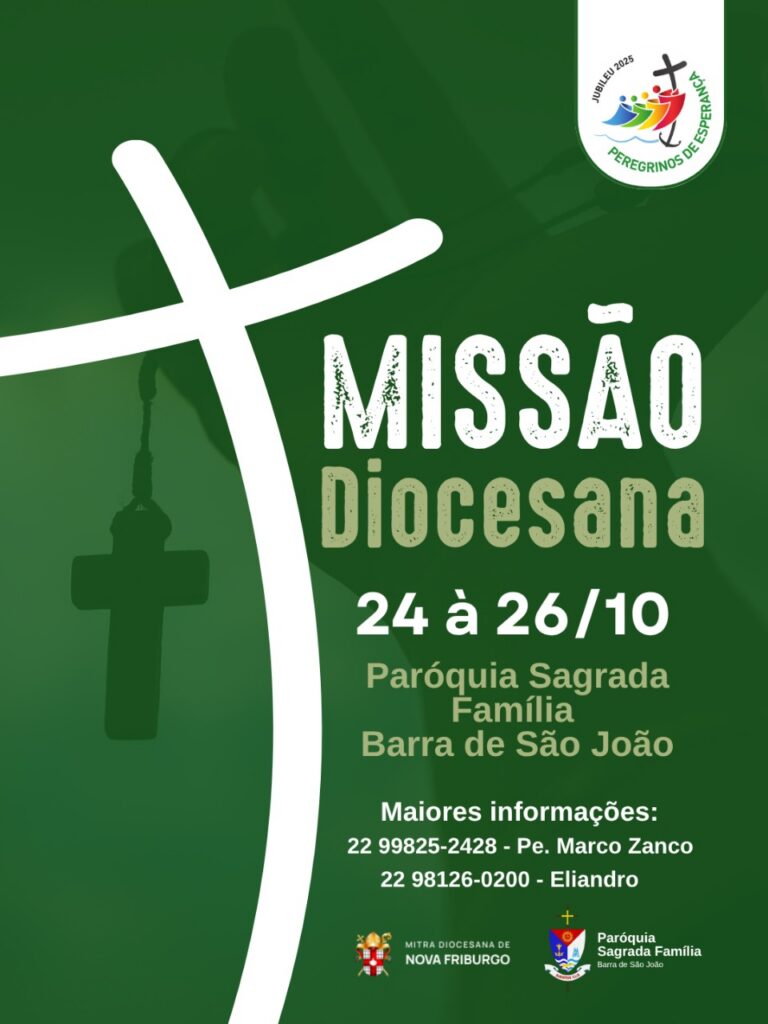 Entre os dias 24 e 26 de outubro, a Paróquia Sagrada Família, em Barra de São João, acolheu com alegria a Missão Diocesana, um tempo especial de renovação da fé e de testemunho cristão. A ação missionária contou com a presença de 30 missionários e missionárias, que atuaram na evangelização