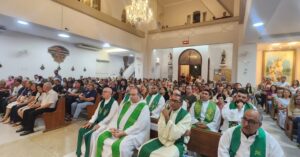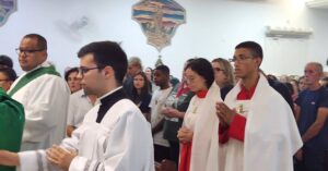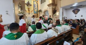 A Santa Missa contou com a expressiva presença do clero do Vicariato Norte, que se fez presente em sinal de fraternidade presbiteral e comunhão eclesial. Também participou em grande número a comunidade paroquial, com fiéis das diversas comunidades e moradores de Itaocara, manifestando acolhida, alegria e esperança por este novo tempo pastoral.