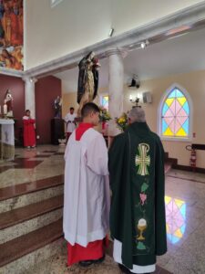 A programação seguiu com o Tríduo em preparação à festa. O primeiro dia foi presidido pelo Padre Carlos Augusto, o segundo dia pelo Padre Roberto Takeshi, e o terceiro dia pelo Padre José Maria, que, em suas reflexões, convidaram os fiéis a viverem com fé, caridade e entrega, a exemplo de Santa Edwiges.