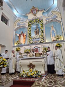 A Santa Missa solene foi presidida pelo Bispo Diocesano, Dom Pedro Cunha Cruz, e concelebrada pelo Pe. Marcus Vinícius Muros, Administrador Paroquial, e pelo Pe. Frei Arnaldo Schott, religioso agostiniano natural da própria paróquia. A celebração contou ainda com a assistência do Diácono Permanente Jorge Mariano e a presença dos seminaristas Mario Rafael de Freitas e Gabriel Bezerra, que também participaram deste momento significativo para toda a comunidade.