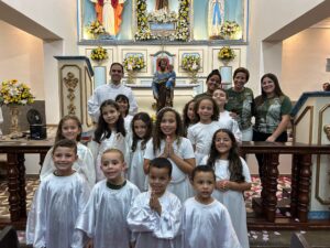 Ao final da celebração eucarística, as crianças da paróquia protagonizaram uma emocionante encenação sobre a vida de São José, recordando sua missão como guardião da Sagrada Família. Em seguida, o padroeiro foi coroado em um gesto simbólico de amor e veneração. A festividade foi enriquecida ainda pela homenagem prestada pela Sociedade Musical União Ribeironense, que contribuiu para tornar o momento ainda mais solene e festivo.