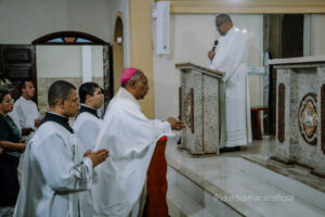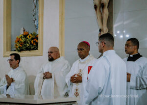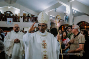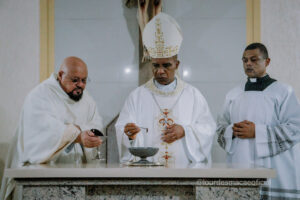 A Paróquia Nossa Senhora de Lourdes viveu, recentemente (14/11/2025) um dos momentos mais significativos de sua história: a celebração dos 25 anos de caminhada pastoral e a solene dedicação do Altar da igreja matriz. O jubileu, ocasião de profundo agradecimento e renovação espiritual, reuniu fiéis, pastorais, movimentos e sacerdotes que marcaram a trajetória paroquial, todos unidos em um único coração para louvar a Deus pelas graças derramadas ao longo dessas duas décadas e meia. A Santa Missa solene, presidida pelo Excelentíssimo e Reverendíssimo Senhor Bispo Dom Pedro Cunha, destacou a importância do altar como centro da vida litúrgica da comunidade. Em um rito rico em simbolismos, unção, incensação, revestimento e iluminação, o novo altar foi consagrado, tornando-se sinal visível da presença de Cristo, “pedra angular” que sustenta e ilumina a Igreja. Mais do que uma comemoração, o Jubileu de Prata foi um convite à memória agradecida, à celebração da fé vivida em comunidade e ao compromisso renovado com a missão evangelizadora. A paróquia, marcada por inúmeras histórias, serviços e testemunhos, reafirmou seu desejo de continuar sendo espaço de acolhida, oração e crescimento espiritual para todo o povo de Deus. Que este tempo jubilar fortaleça a unidade da comunidade e inspire novos passos na construção do Reino, sempre guiados pela intercessão de Nossa Senhora de Lourdes. “