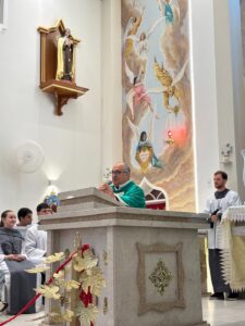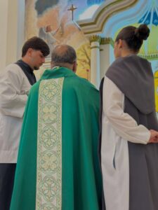 Estiveram presentes na celebração o Padre Higor, Vigário Episcopal do Vicariato Norte, o Padre Marcus Vinicius Murus, além dos Diáconos Alcides e Ênio, que também colaboraram no serviço litúrgico.