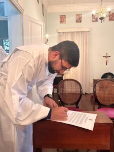 Ainda nesta sexta-feira, foi celebrado o Rito de Admissão às Ordens Sacras do seminarista Marcos Rodrigo Costa Pimentel, momento significativo no caminho formativo rumo ao ministério ordenado. Em seguida, os quatro candidatos realizaram a Profissão de Fé e o Juramento de Fidelidade, reafirmando publicamente sua adesão à fé da Igreja e o compromisso de comunhão e obediência ao Magistério e à Igreja particular.