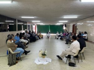 Em seguida, o Bispo abriu espaço para partilhas, perguntas e diálogos sobre a realidade da Vida Religiosa Consagrada. Entre os temas trazidos, destacaram-se os desafios do envelhecimento das comunidades, a redução das vocações e as particularidades da atuação dos vocacionados da geração Z, marcados por novas sensibilidades, ritmos e linguagens. As contribuições revelaram tanto as dificuldades quanto a esperança que impulsiona aqueles que consagram a vida ao Reino.